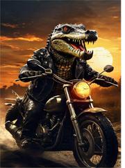 Motosiklet Kullanan Timsah Art Mdf Poster 25cmX 35cm Ayrıntılar Ürün Özellikleri