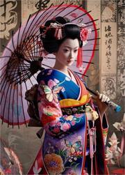 Şemsiyeli Japon Kadın Mdf poster 50 cm x 70 cm