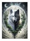 Siyah Beyaz Kurt Ve Dolunay Dekoratif ahşap Tablo 25 cm x 35 cm