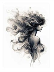Siyah Saçlı Kadın Art Mdf Tablo 50 cm x 70 cm