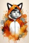 Tilki Kostümlü Çocuk Modern Ahşap Tablo 25 cm x 35 cm