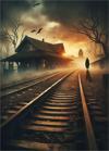 Tren Rayındaki Korkunç İskelet Tasarım Mdf Tablo 35 cm x 50 cm