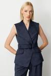 Detay: Dokuma kumaştan üretilmiş, astarlı ve kruvaze yaka tasarıma sahip kolsuz yelekler; kemerli detayları ve kapaklı cepleriyle hem şık hem de fonksiyonel bir görünüm sunar. Düğmeli kapama özelliğiyle klasik tarzı modern çizgilerle buluşturan bu modeller, zarif ve özgün kombinler için ideal bir seçenektir. Günlük stilin yanı sıra özel davetlerde de rahatlıkla tercih edilebilecek bu yelekler, stil sahibi gardıropların tamamlayıcı parçası haline gelir;