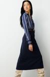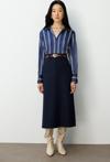 Detay: Dokuma kumaştan üretilen bu astarsız etek, kemerli tasarımıyla bel hattını vurgulayarak şık bir siluet sunar. Fermuarlı kapama detayı pratik bir kullanım sağlarken, cepsiz yapısı sayesinde sade ve zarif bir görünüm elde edilir. Günlük kombinlerden özel davetlere kadar farklı stillere uyum sağlayan bu etek, modern ve minimal bir tercih olarak öne çıkar;