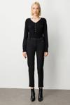 Detay: Yan cepli, dar paça tasarımıyla modern bir görünüm sunan bu dokuma kumaş pantolon, günlük şıklığı konforla buluşturur. Lastikli beli sayesinde rahat bir kullanım sağlarken, fermuarlı kapama detayı pratikliği artırır. Hem stil sahibi hem de fonksiyonel olan bu pantolon, şehir hayatının dinamik temposuna mükemmel uyum sağlar;