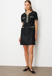 Kadın Boncuk İşlemeli Tüvit Elbise 4003 Siyah