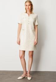 Detay: Dokuma kumaştan üretilen bu astarlı elbise, hakim yaka tasarımıyla sade ve zarif bir duruş sunar. Kısa kol yapısı sayesinde sıcak havalarda ideal bir kullanım sağlarken, fermuarlı kapama detayı pratiklik ve modernlik kazandırır. Astarlı iç yapısı konforu artırırken, klasik çizgileriyle hem günlük hem de özel gün kombinlerinde şık bir tercih olarak öne çıkar;