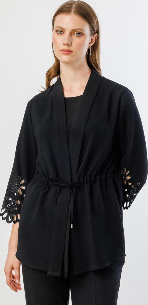 Detay: İç atletli ve lazer kesim detaylarıyla öne çıkan bu büyük beden ince ceket, zarif ve modern bir görünüm sunuyor. Kol uçlarındaki taş baskı, tasarıma şık bir dokunuş katarken, yarım kollu yapısı sayesinde hem rahat hem de stil sahibi bir kullanım sağlıyor. Beli bağcıklı tasarımı, vücuda uyum sağlayarak şıklığı tamamlıyor. Günlük kombinlerden özel davetlere kadar geniş bir kullanım alanına sahip olan bu ceket, tarzınıza sofistike bir hava katmak için ideal;