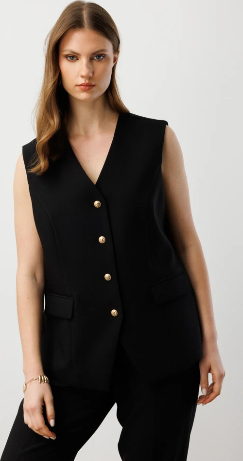 Ekol Kadın Büyük Beden Kapak Cepli V Yaka Yelek 5527 Siyah