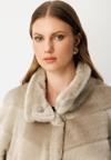 Detay: Peluş kumaşıyla yumuşak dokunuş sunan, astarlı ve klasik yakalı bu uzun kollu kaban, kış stilinizin vazgeçilmezi olacak. Çıt çıt kapama detayı ve yan cepleriyle hem pratik hem de şık bir kullanım sağlar. Soğuk havalarda sıcak tutan yapısıyla konforu ve zarafeti bir arada sunar;