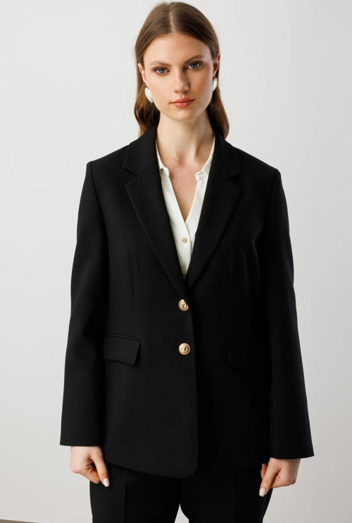 Detay: Astarlı dokuma kumaştan üretilen uzun kollu ceket, klasik ceket yaka tasarımı ve düğmeli kapama detayıyla zamansız bir şıklık sunar. Kapaklı cepleri hem fonksiyonel hem de estetik bir görünüm kazandırırken, kaliteli dokusu ve modern çizgileriyle sofistike bir duruş sağlar. İş hayatından özel davetlere kadar her ortamda stilinizi tamamlayacak gardırobunuzun vazgeçilmez parçalarından biridir;