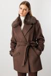 Ekol Kadın Büyük Beden Yakası Kürklü Kaban 6333 Kahverengi