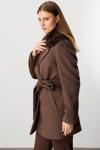 Borcka Tekstil Kahverengi Kuşaklı Kapitone Mont - Image 1