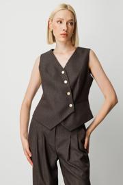 Detay: Dokuma kumaştan üretilmiş, astarlı ve V yaka tasarıma sahip kolsuz yelekler; düğmeli kapama ve fleto cep detaylarıyla sade ama zarif bir görünüm sunar. Hafif yapısı sayesinde hem mevsim geçişlerinde hem de katmanlı kombinlerde rahatlıkla kullanılabilir. Modern çizgileriyle öne çıkan bu yelekler, günlük stilin yanı sıra ofis ve özel davetlerde de şıklığı tamamlayan ideal bir parçadır;