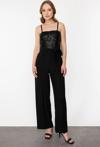 Detay: İp askılı, üstü pul işlemeli, bol paça tulum;