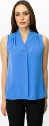 Detay: Bu şık ve modern bluz, kolsuz ve omzu drapeli tasarımı ile dikkat çekiyor. V yaka detayı, bluzun zarafetini ve feminenliğini ön plana çıkarıyor. İnce yapısı sayesinde hafif ve rahat bir giyim deneyimi sunan bu bluz, tam kalıp özelliği ile vücuda mükemmel bir uyum sağlar. Hem günlük kullanımda hem de özel davetlerde şıklığınızı tamamlamak için ideal bir seçimdir. Gardırobunuzun vazgeçilmez bir parçası olmaya aday bu bluzu hemen keşfedin ve stilinizi yeniden tanımlayın;