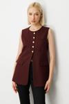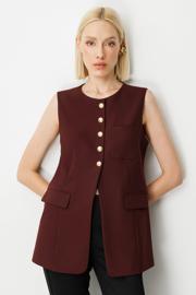 Detay: Dokuma kumaştan üretilmiş, astarlı ve sıfır yaka tasarıma sahip kolsuz yelekler; düğmeli kapama ve kapaklı cep detaylarıyla sade ama dikkat çekici bir stil sunar. Hafif yapısı sayesinde mevsim geçişlerinde ideal olan bu modeller, hem günlük kombinlerde hem de katmanlı giyimde şıklığı tamamlar. Fonksiyonel cepleri ve klasik çizgileriyle modern gardıropların vazgeçilmez parçalarından biridir;