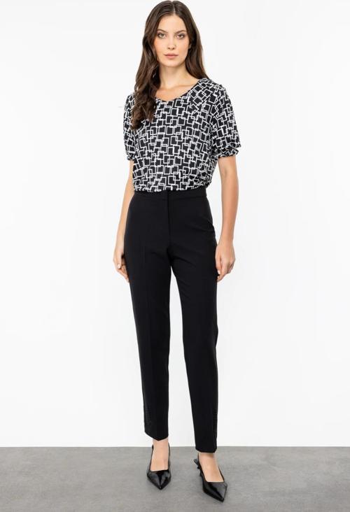 Detay: Paçası nakışlı, yüksek bel, kopçalı pantolon, takım üst : 7010;