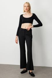 Detay: Yüksek bel tasarımıyla silueti zarifçe uzatan bu dokuma kumaş pantolon, bol paça kesimiyle hem rahatlık hem de sofistike bir görünüm sunar. Cepsiz yapısı sayesinde minimal ve sade bir stil elde edilirken, fermuarlı kapama detayı pratikliği ön plana çıkarır. Günlük kombinlerden ofis şıklığına kadar her ortamda stilinizi tamamlayacak bu pantolon, modern kadının gardırobunda güçlü bir yer edinmeye aday;