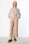 Detay: Yüksek bel ve bol paça tasarımıyla hem modern hem de rahat bir stil sunan bu ince pantolon, tek pile detayıyla zarif bir dokunuş katıyor. Yan cepleriyle işlevselliği artırırken, tam kalıp yapısıyla vücuda mükemmel uyum sağlıyor. Akışkan duruşu sayesinde günlük kombinlerden özel davetlere kadar geniş bir kullanım alanı sunan bu model, hem konfor hem de şıklık arayanlar için ideal bir seçenek;