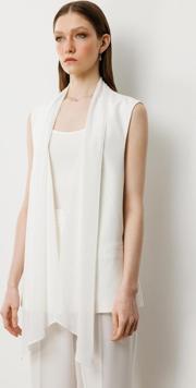 Detay: Tül şal yakalı, astarsız ve kolsuz olan bu yelek, süs çizgi cepli tasarımıyla zarif ve modern bir görünüm sunar. Tam kalıp ve ince dokusuyla rahat bir kullanım sağlayan bu yelek, gardırobunuzun öne çıkan parçalarından biri olacak ve çeşitli kombinlerle rahatça kullanılabilecek.Takım Pantolon Kodu: 06504;