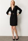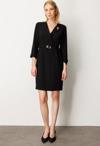 Detay: Dokuma kumaştan üretilen bu astarlı elbise, kruvaze yaka tasarımıyla zarif ve sofistike bir görünüm sunar. Truvakar boy yarım kolları sayesinde hem şık hem de mevsim geçişlerine uygun bir kullanım sağlar. Kuşaklı bel detayı vücut hatlarını zarifçe vurgularken, fermuarlı kapama pratiklik ve modernlik kazandırır. Günlük stilinizden özel davetlere kadar geniş bir kullanım alanı sunan bu elbise, sade çizgileriyle dikkat çekici bir tercih olur;