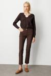 Detay: Yüksek bel tasarımıyla vücut hatlarını zarifçe ortaya çıkaran bu dokuma kumaş pantolon, dar paça kesimiyle modern ve şık bir görünüm sunar. Yan cepleriyle fonksiyonelliği artırırken, fermuarlı kapama detayı sayesinde pratik bir kullanım sağlar. Günlük stilinizden ofis kombinlerinize kadar her ortamda rahatlıkla tercih edilebilecek bu pantolon, stil sahibi kadınların favorisi olmaya aday;
