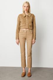 Detay: Yüksek bel tasarımıyla vücut hatlarını zarifçe ortaya çıkaran bu dokuma kumaş pantolon, dar paça kesimiyle modern ve şık bir görünüm sunar. Yan cepleriyle fonksiyonelliği artırırken, fermuarlı kapama detayı sayesinde pratik bir kullanım sağlar. Günlük stilinizden ofis kombinlerinize kadar her ortamda rahatlıkla tercih edilebilecek bu pantolon, stil sahibi kadınların favorisi olmaya aday;