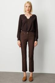 Mihrim Butik Yüksek Bel Düz Paça Gabardin Pantolon Koyu Taş Rengi