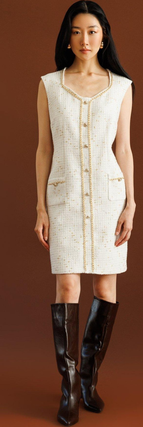 Zincir Detaylı Midi Tüvit Elbise 4001-25k Ekru