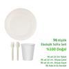 Roll-up Ekolojik 22 Cm. 96 Kişilik Parti Piknik Sofra Sunum Seti - Doğal Tabak Bardak Çatal Kaşık Takımı