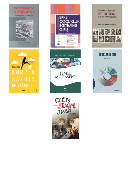 Ekonomik Coğrafya - Erken Çocukluk Eğitimine Giriş - Gelenekten Geleceğe Eğitim Bilimi - Korkmasaydın Ne Yapardın? - Temel Muhasebe - Türklerin Dili - Çocuğum Bağımlı Olmasın