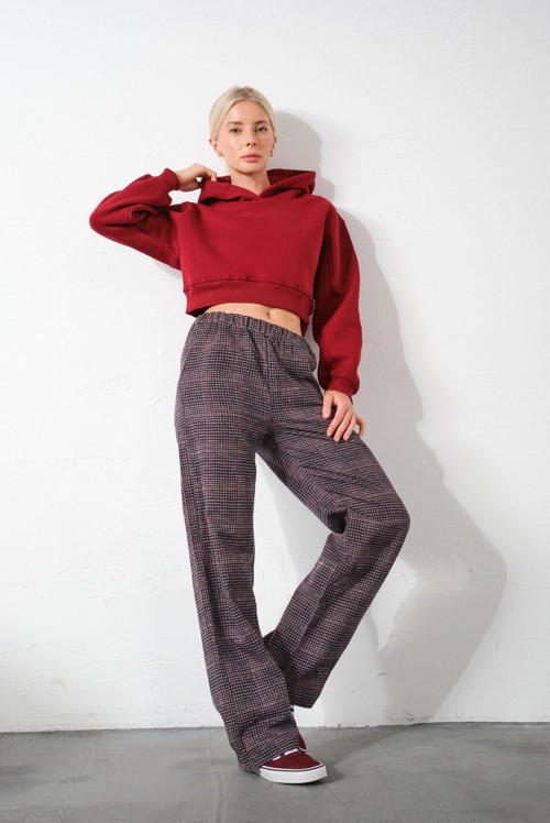 Pamuk ve polyester karışımı bu ekoseli flanel pijama altı, orta kalınlıkta dokuma kumaşı ile yumuşak ve rahat bir kullanım sunar. Yüksek beli ve geniş paça kesimi sayesinde hem rahat hem de şık bir görünüm sağlar. İster gece yatarken, ister evde keyif yaparken ya da dışarıda günlük kullanımda tercih edebilirsiniz.