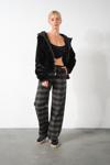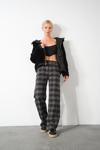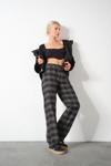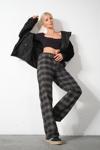 Domoda Ekoseli Flanel Yüksek Bel Pijama Altı Rahat Kesim Geniş Paça Pamuklu Kadın Pantolon