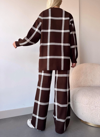 Ekoseli triko takım kahvebeyaz, şık ve rahat bir kombin sunar.