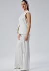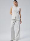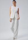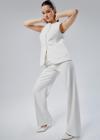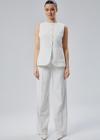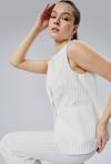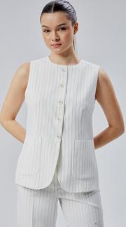 - Ekru Çizgili Cep Detaylı Yelek Pantolon Takım