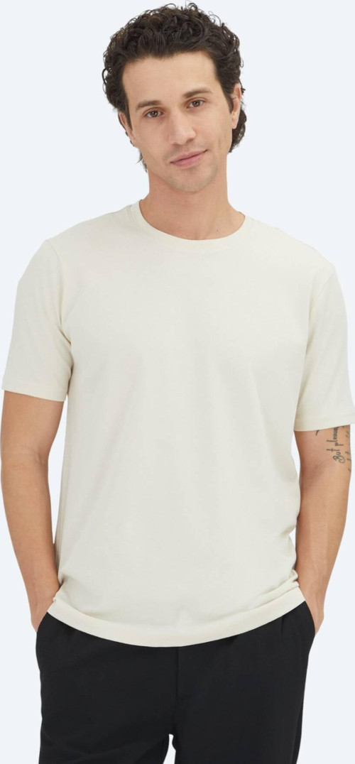 Kip Ekru Düz Bisiklet Yaka %100 Pamuk T-Shirt