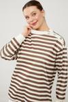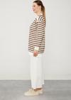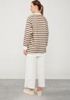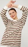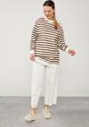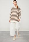 Ekru-Kahve Bisiklet Yaka Çizgili Desen Sweatshirt