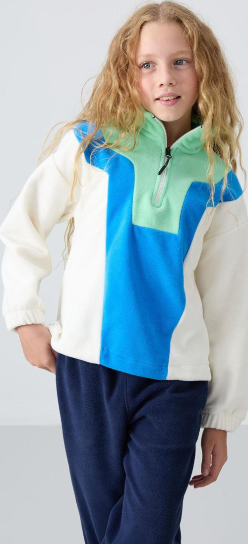 Tommy Life Ekru Kalın Yumuşak Dokulu Oversize Nakışlı Polar Kız Çocuk Sweatshirt - 75153