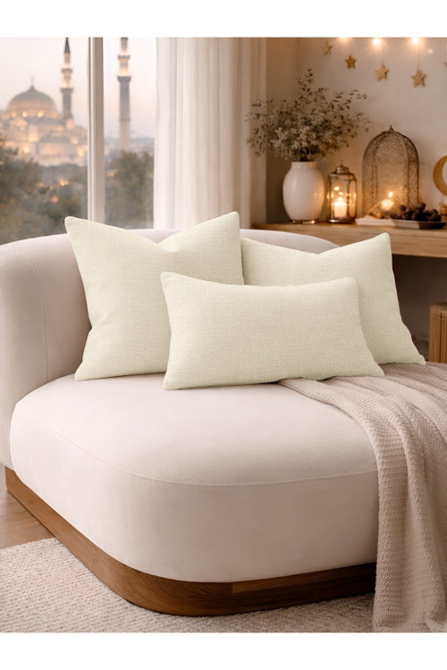 Ekru Keten Dokulu Dekoratif Kırlent Kılıfı | Modern Salon Koltuk Yastığı
