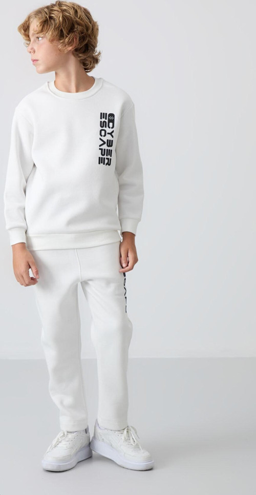 Tommy Life Ekru Pamuklu Kalın İçi Tüylü Yumuşak Dokulu Standart Fit Baskılı Erkek Çocuk Eşofman Takım - 11233