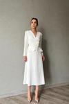 Ekru Pile Detaylı Kruvaze Elbise