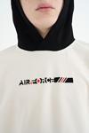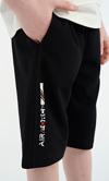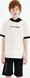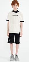Tommy Life Ekru - Siyah Kanguru Cepli Kapüşonlu Nakış Detaylı Oversize Erkek Çocuk Şort Takım - 11136