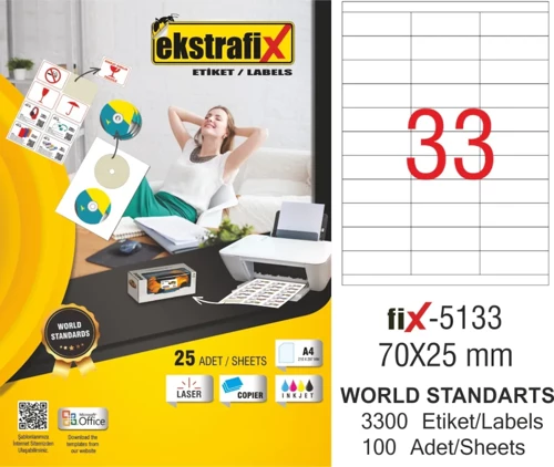 Ekstrafix Laser Etiket 100 Yaprak 70X25Mm Laser-Copy-İnkjet Fix-5133 8697659886271 A4 Boyut