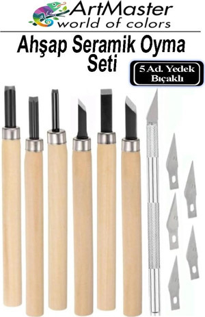 Seramik Oyma Seti Ahşap 6 Lı 1 Paket Set Paslanmaz Çelik Bıçaklı Ağaç Oyma Heykel Hobi Kretuar Gravür