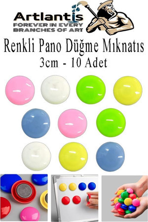 Artlantis Renkli Pano Düğme Mıknatısı 10 lu 1 Paket Manyetik Yuvarlak Mıknatıs Buzdolabı Renkli Plastik Kaplı Dekarasyon Hobi Etki