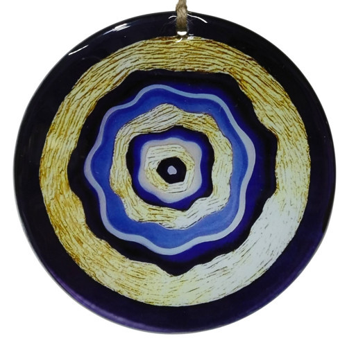 Klasik Nazar Sembolüne Sanatsal Bir Yorum: 16 cm Dalgalı Tasarım Cam Duvar Süsü