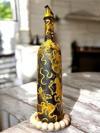 - Her bir parçası tek tek el boyaması ile hazırlanan bu şık şişe, üzerine tek tek işlenmiş el boyaması renkleri ve altın rengin uyumuyla adeta bir sanat eserine dönüşüyor.