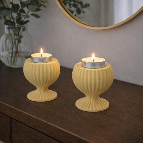 Zarif formu ve modern çizgileriyle öne çıkan bu el yapımı beton tealight mumluk seti, yaşam alanlarınıza sıcak ve şık bir atmosfer kazandırır.