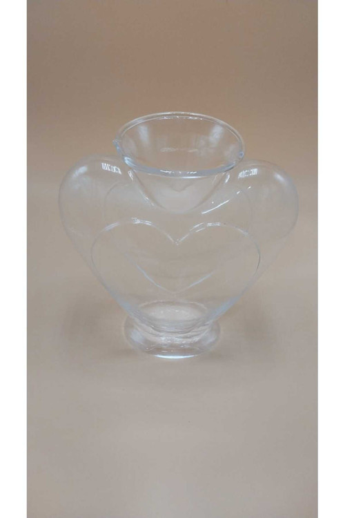 El Yapımı Cam Kalp Vazo Şeffaf 23cm